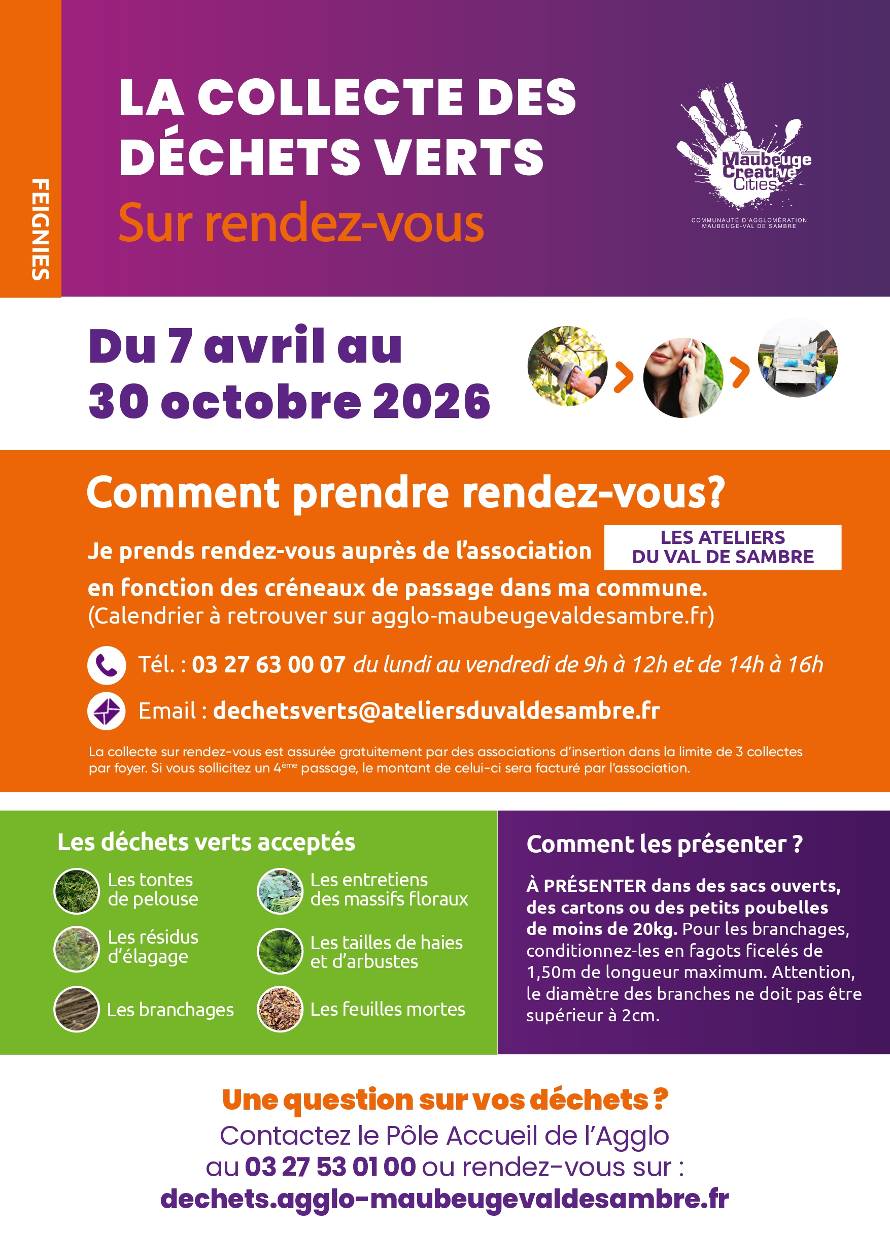La collecte des déchets verts reprend à compter du 7 avril 2026. Toutes les infos sur le site de l’Agglomération.