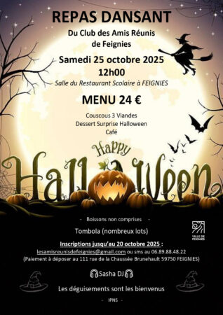 Le club des Amis réunis vous propose un repas dansant sur le thème d’Halloween le samedi 25 octobre 2025.